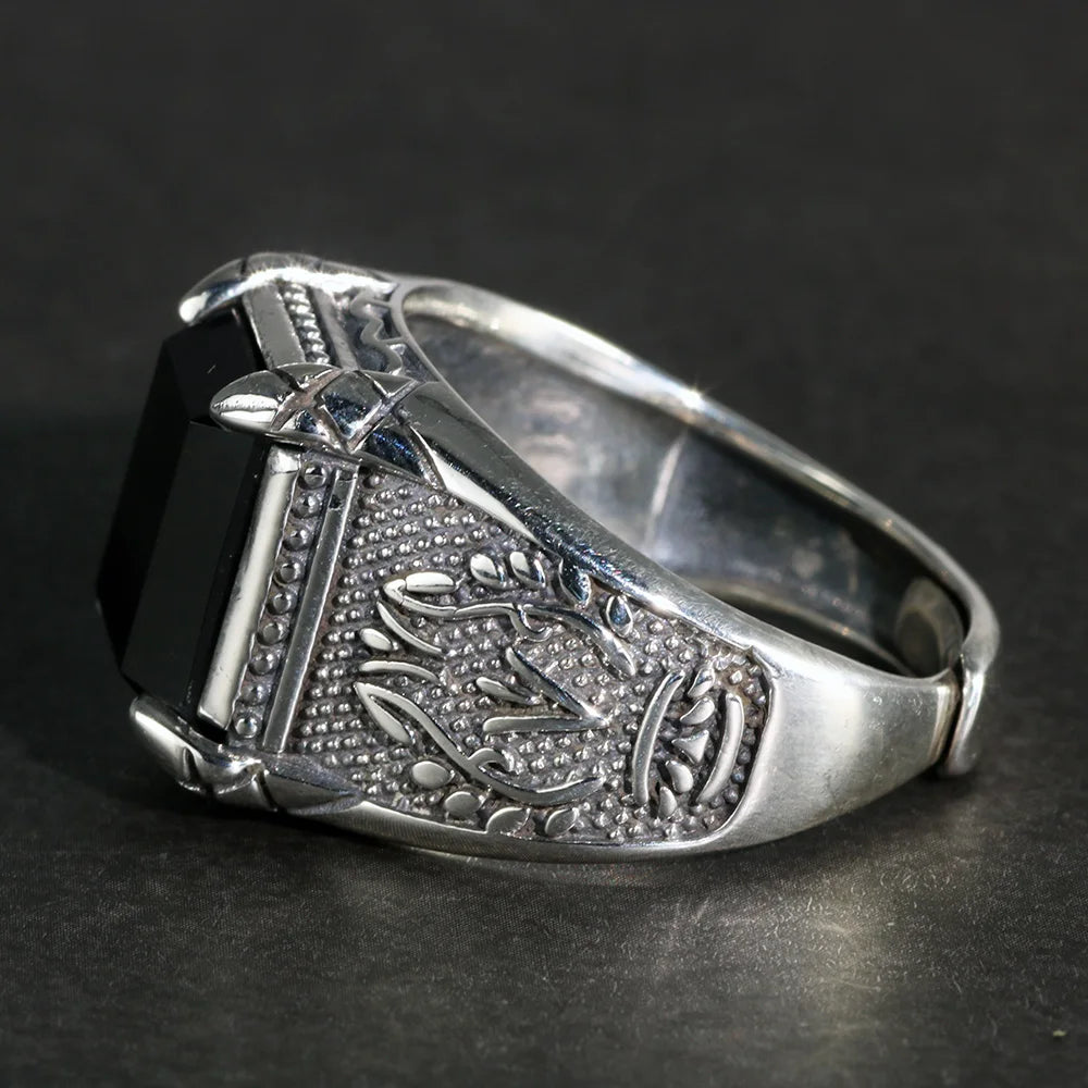 Claw Set Natural Onyx Resizable Ring