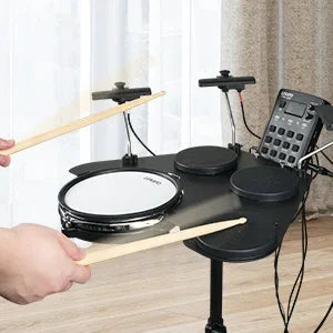 Features: 220+ Sounds, USB connection, MIDI, 2 simple trigger foot pedals, Drum sticks & Travel bag