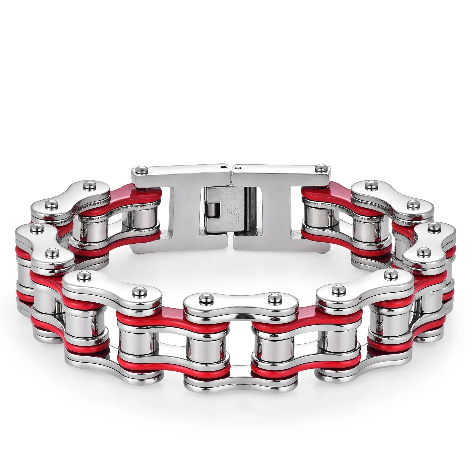 Steel Red Stainless Steel Bicycle Chain Bracelet